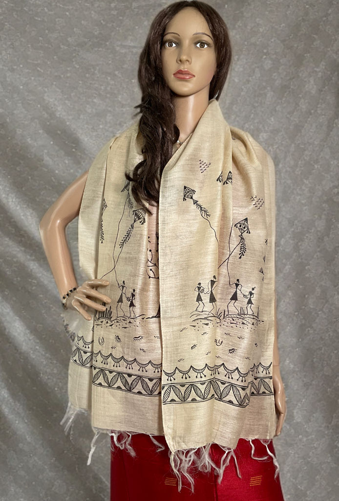 We bring to you this Hand Painted Stole on 100% Handwoven Silk Fabric. It is hand-painted by traditional Artists.