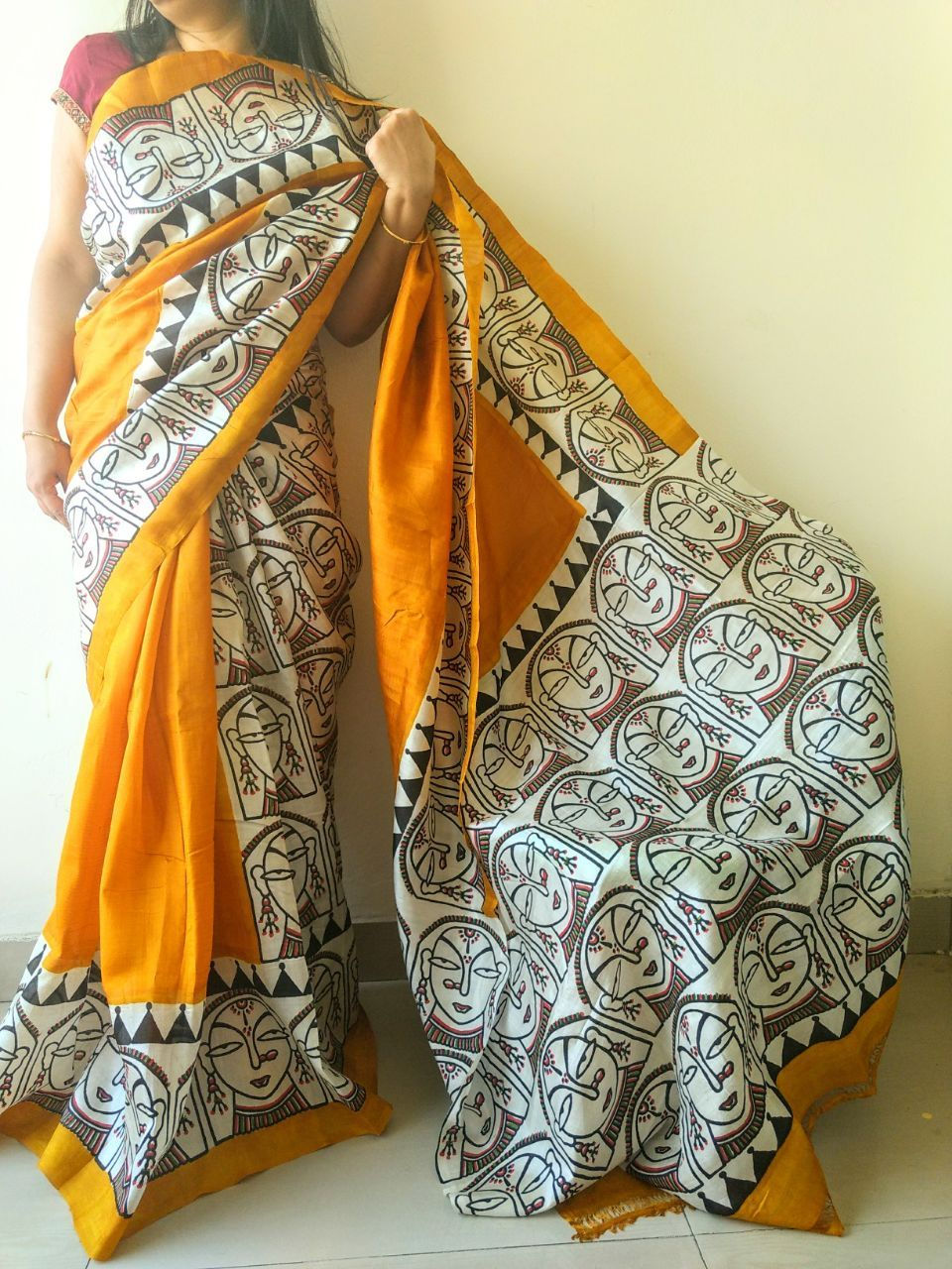 We bring to you this Hand Painted Saree on 100% Handwoven Fabric. It is hand-painted by traditional Artists.