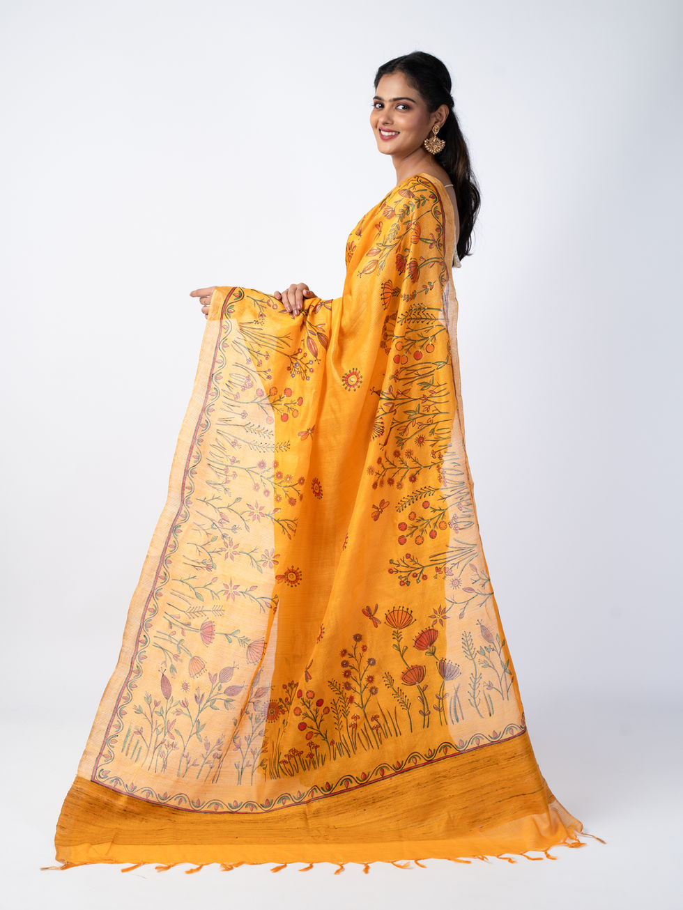 We bring to you this Hand Painted Saree on 100% Handwoven Fabric. It is hand-painted by traditional Artists.