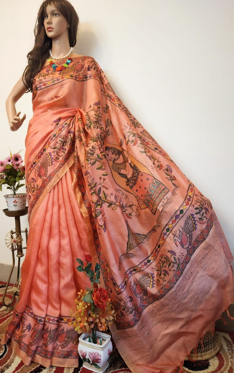 We bring to you this Hand Painted Saree on 100% Handwoven Fabric. It is hand-painted by traditional Artists.