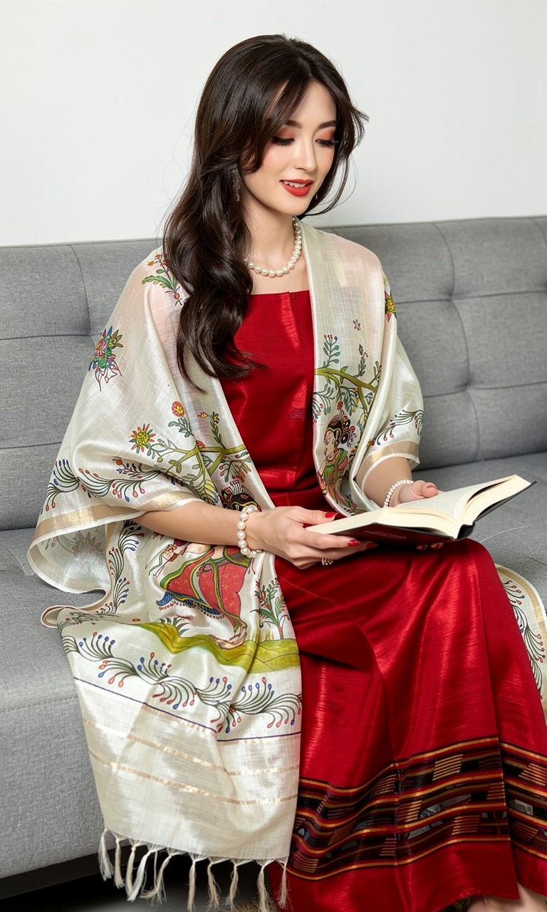 Pattachitra Art Hand painted Silk Dupatta