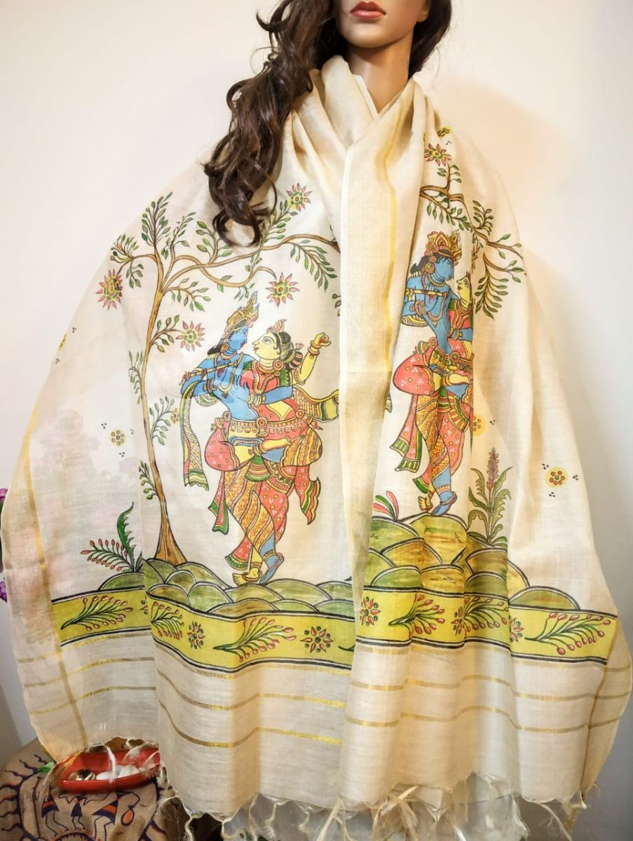 We bring to you this Hand Painted Dupatta on 100% Handwoven Fabric. It is hand-painted by traditional Artists.
